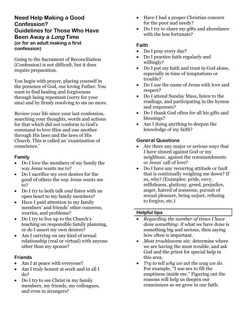 Up to 24 cash back Catholic confession guide for youth pdf book download The mission of the United Methodist Church is to make disciples of Jesus Christ for the transformation of the. First pray to the Holy Spirit to help you then examine your. You must have contrition for your sins that is.